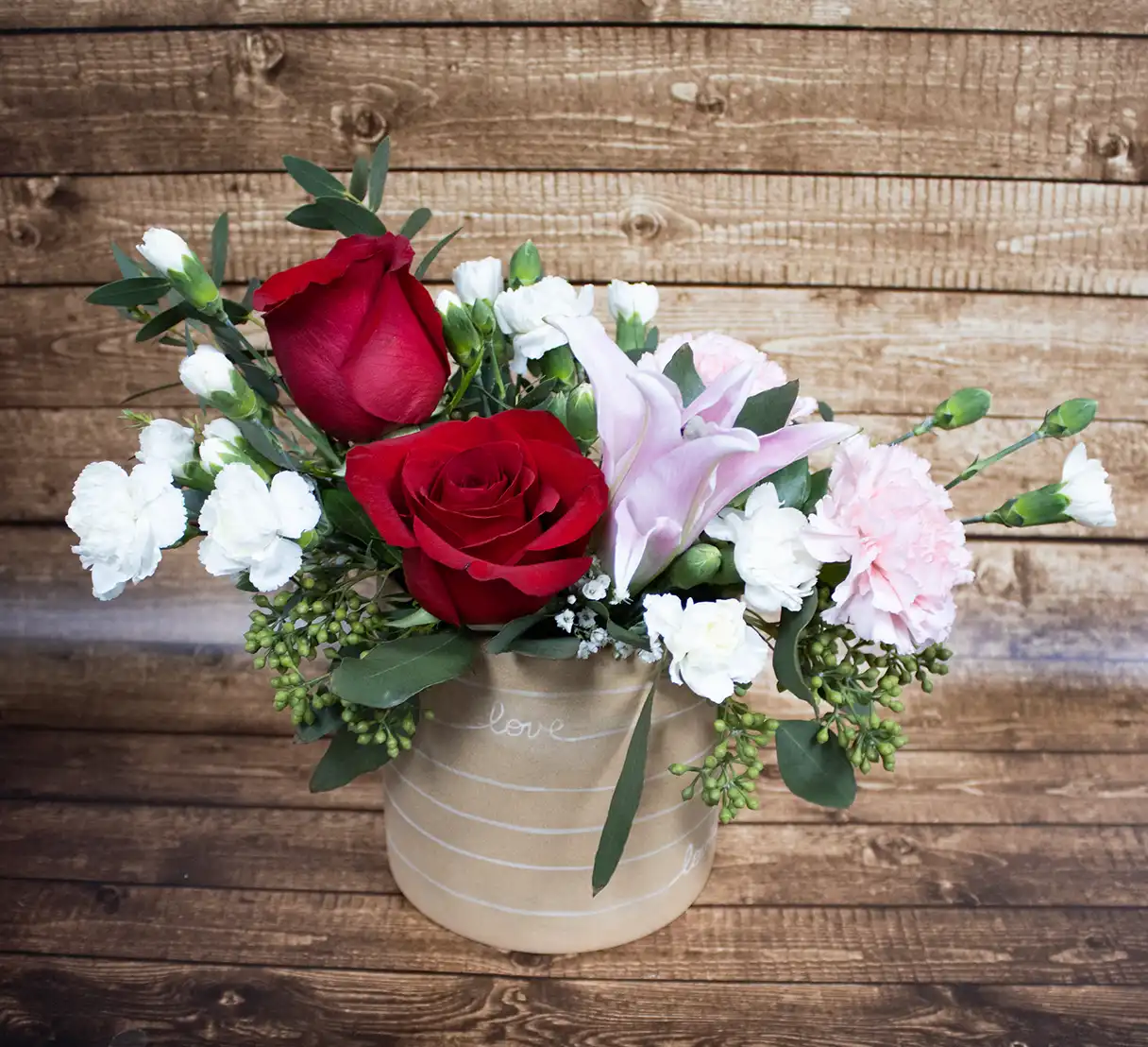 Celebrate romance with a Valentine’s Day floral arrangement designed to capture the heart. Featuring classic roses, fragrant oriental lilies, and soft carnations, this bouquet offers a beautiful harmony of color, fragrance, and texture. Thoughtfully arranged in a stylish ceramic vase, it provides a timeless presentation that enhances the elegance of each bloom. Perfect for Valentine’s Day, anniversaries, or meaningful moments, this arrangement delivers a heartfelt expression of love that will be cherished long after the occasion.